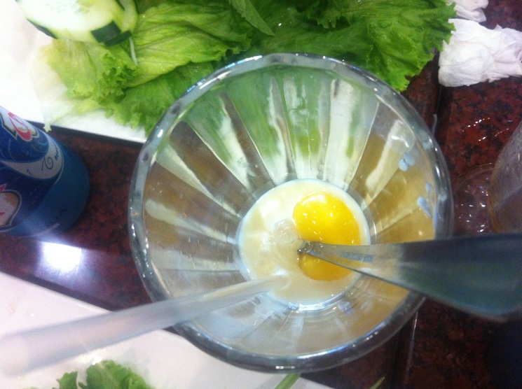 Et pour arroser le tout, un cocktail composé de lait sucré, d’un oeuf cru, le tout à mélanger avec du soda type Canada Dry… texture intéressante à goûter.