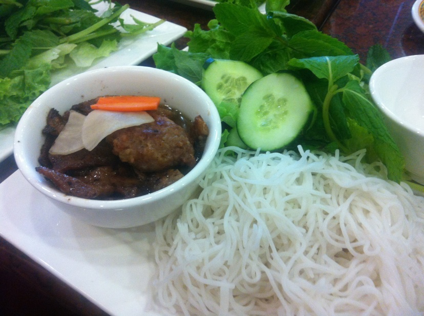 Gros week-end de travail, donc peu de visites ce week-end, sauf un peu de shopping et un restaurant viêtnamien ce soir, vers San Jose, au sud d’Oakland, dans une grosse communauté viêtnamienne. Au menu, une sorte de grosse crêpe avec du soja, des crevettes et du poulet à l’intérieur, un rouleau de printemps, et surtout, du poisson frit à rouler avec de la salade, de la menthe, des nouilles et des concombres dans des feuilles de riz, à faire nous-même…