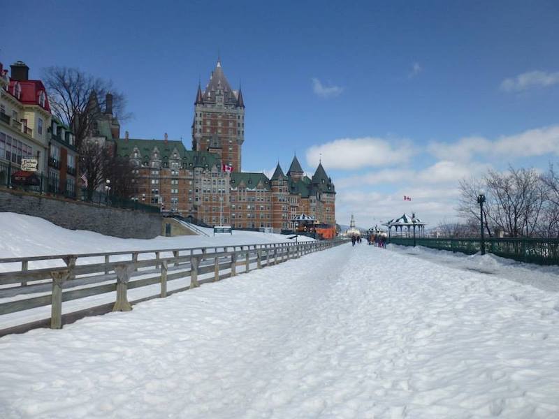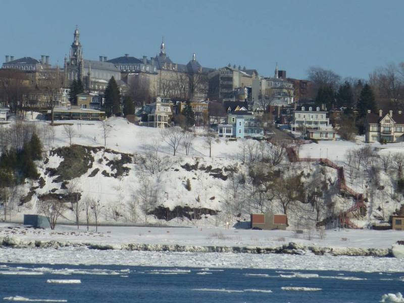 Il parait que les Québécois ont eu le pire hiver depuis des années. Le dégel qui aurait dû commencer en mars est à peine amorcé, et la neige est encore bien là. Dans la ville haute, sur la promenade qui longe le fleuve Saint-Laurent, il faut être un peu équipé pour ne pas glisser.