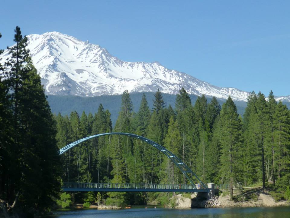 Week-end prolongé : lundi est férié – Memorial Day – et j’en ai profité pour aller camper au nord de la Californie, au lac Siskiyou, au pied du Mont Shasta. Le Mont Shasta est un volcan de 4317 mètres, toujours en activité, enfermant 7 glaciers, et de nombreux alpinistes s’attaquent au sommet… C’est à environ 4 heures et demi de San Francisco.