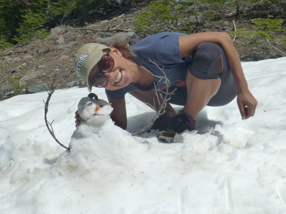 Grosse ascension au milieu des pins et de la neige encore bien présente, on en a profité pour faire un petit bonhomme de neige.