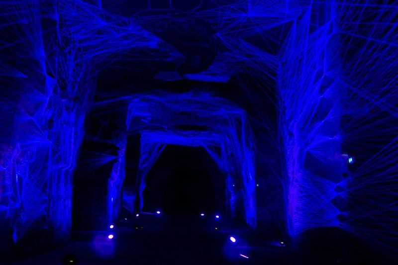 45 km de fil, plus de 65 000 clous, sur 60 mètres de long et 6 à 7 mètres de hauteur et de largeur, Julien Salaud déploie une toile d’araignée immense, y tisse des figures et des animaux plus vrais que nature, pour créer un monde féérique.