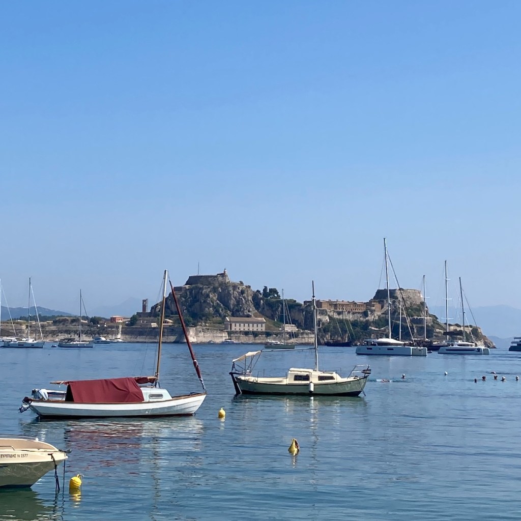Je reviens de dix jours passés à Corfou, cette très belle île sur la côte nord-ouest de la Grèce. La mer est d’un bleu transparent à couper le souffle, et on peut y apercevoir de nombreux poissons. C’est plein de touristes, mais on y trouve des endroits agréables, des villages dans les montagnes avec des chats qui font la sieste et des monastères avec vue sur mer. C’est une île qui a été longtemps sous domination vénitienne, l’influence italienne se fait sentir. Le prince Philip y est né. On y mange aussi très bien. Je vous mets quelques photos en vrac, il y en d’autres sur mon Instagram…